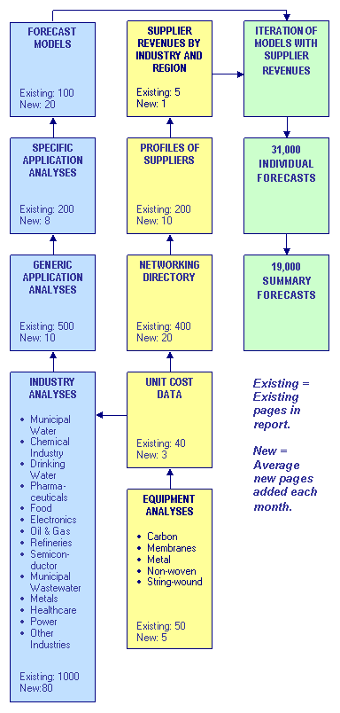 Based on the generic and specific application analyses and the industry production rates contained in the “industry analyses” sections models are determined which provide present and future revenues for each of the equipment types in each industry in each country. However these models need validation. This is where the second analyis path comes into play. A networking directory identifies the universe of suppliers of each equipment type in each region of the world. Profiles of the larger companies become the basis of individual company revenue determinations. The aggregate of these individual revenues for the past year is compared to the models in the upper path. An iteration of these two approaches results in a validated model.