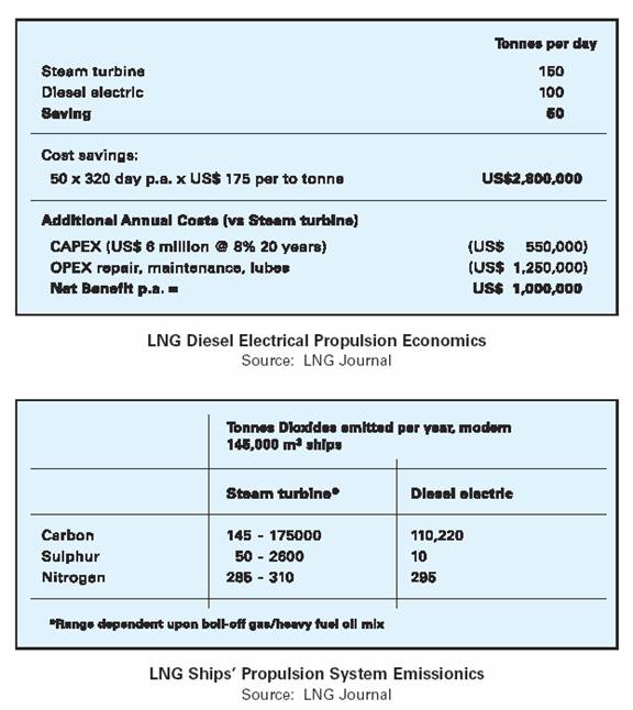 In ship design, new technologies are also helping to reduce costs. New propulsion systems are aimed to replace the traditional steam turbine engines with diesel electric ones that are more efficient. This will not only reduce fuel costs but will also increase cargo carrying capacity and reduce carbon, sulfur and nitrogen emissions as detailed in the following tables.